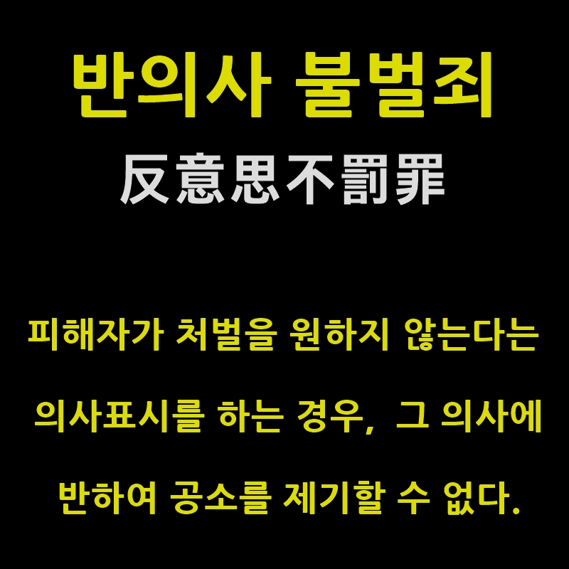 반의사불벌죄(피해자가 가해자의 처벌을 원하지 않는다는 의사를 표시하면 처벌할 수 없는 범죄)의 자세한 내용은 아래 링크를 참조하세요.